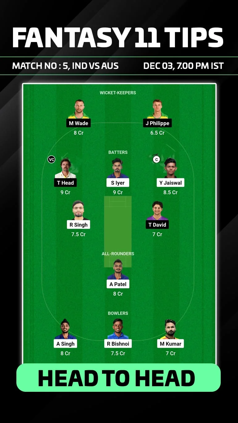 IND vs AUS Dream11 Prediction, Fantasy Team Today’s, Playing XI, Head to Head Stats, and Injury Updates for Australia tour of India 2023, 5th T20I