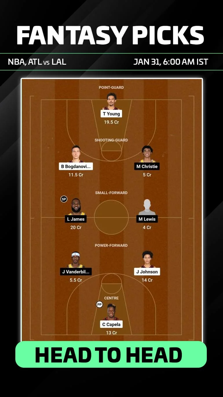 Suggested Playing 8 No.1 for ATL vs LAL Dream11 NBA Fantasy: