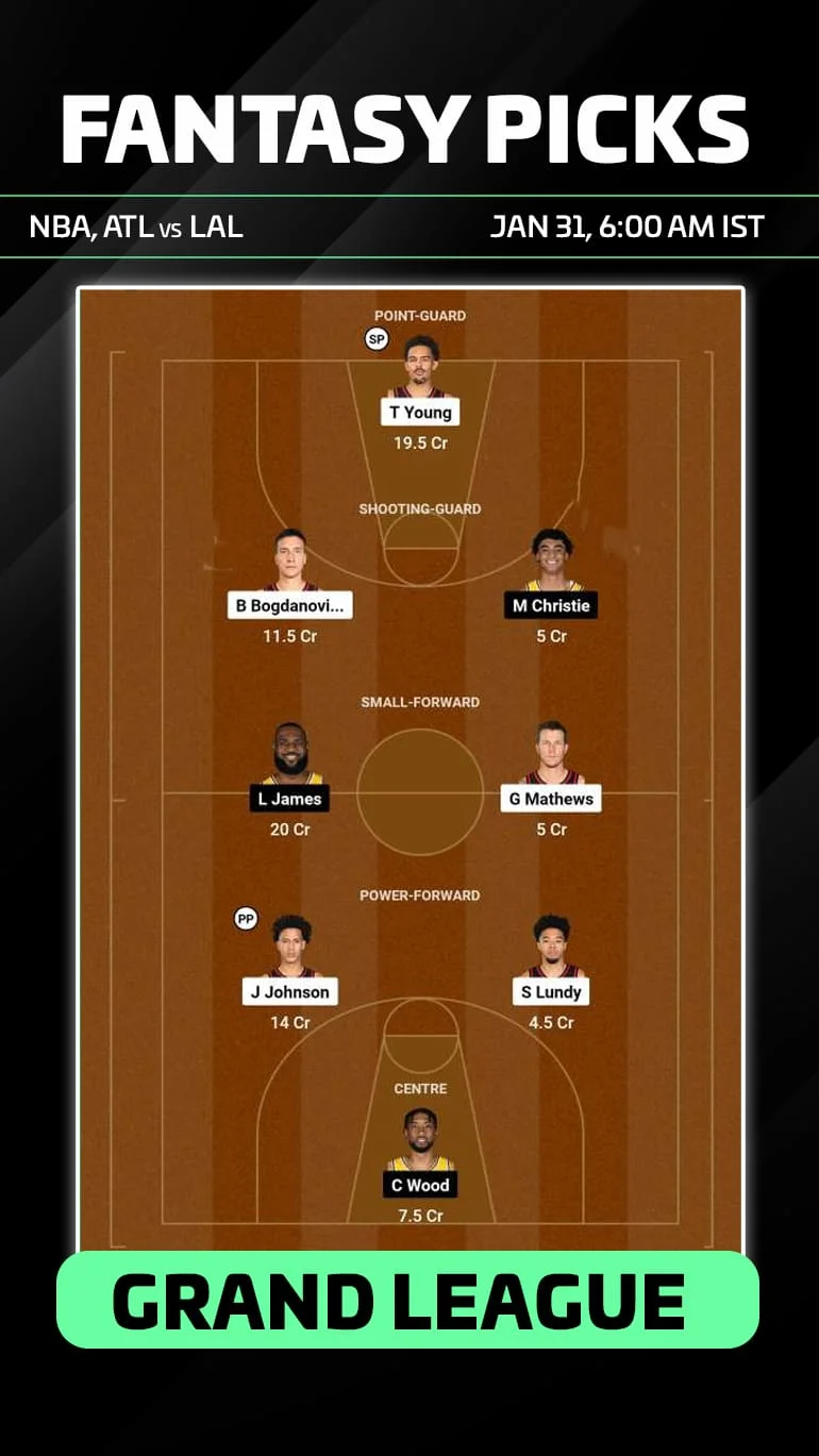ATL vs LAL Dream11 Prediction, Fantasy NBA Tips, Playing 8, Injury & More Updates