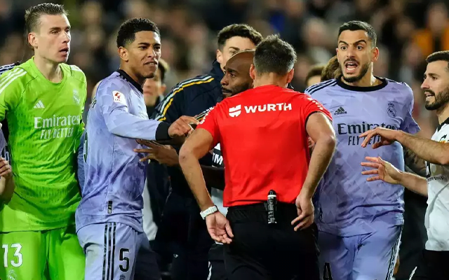 Jude Bellingham was handed the red card after the match between Real Madrid and Valencia on Sunday. A controversy broke out during the dying moment of the game as the referee blew the whistle even before the end of the full time. As he realized the mistake, the referee allowed the players to continue the play. And when Real Madrid had their control over the ball, the referee committed another blunder.