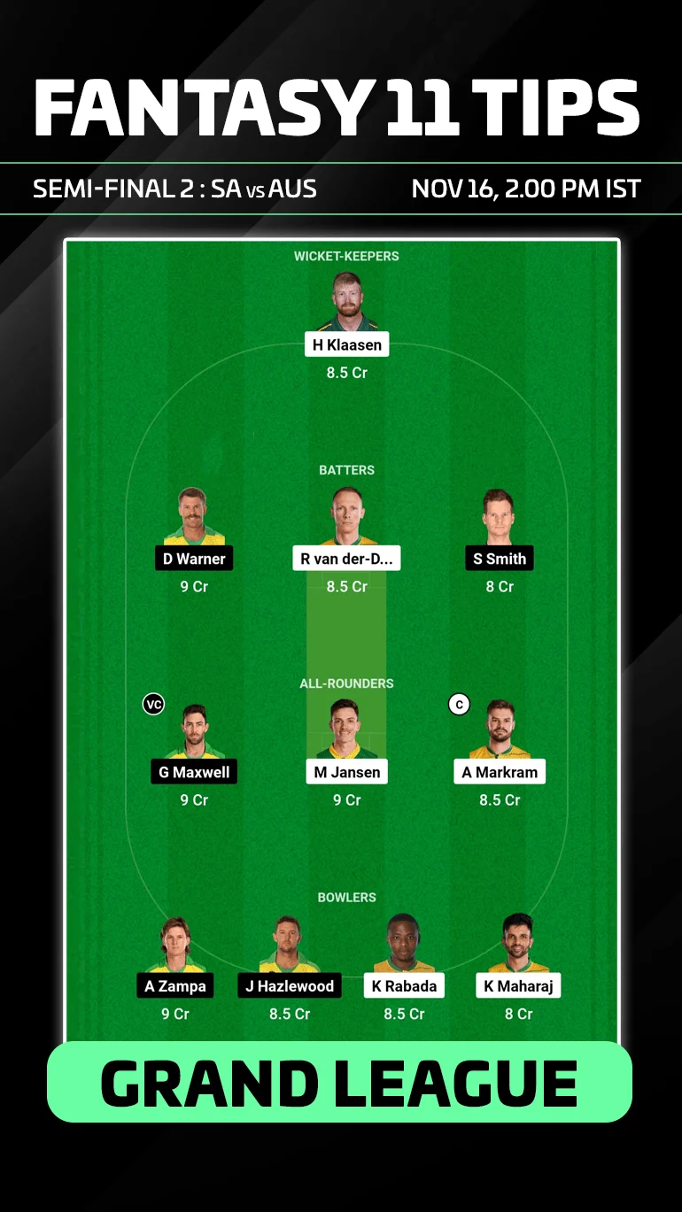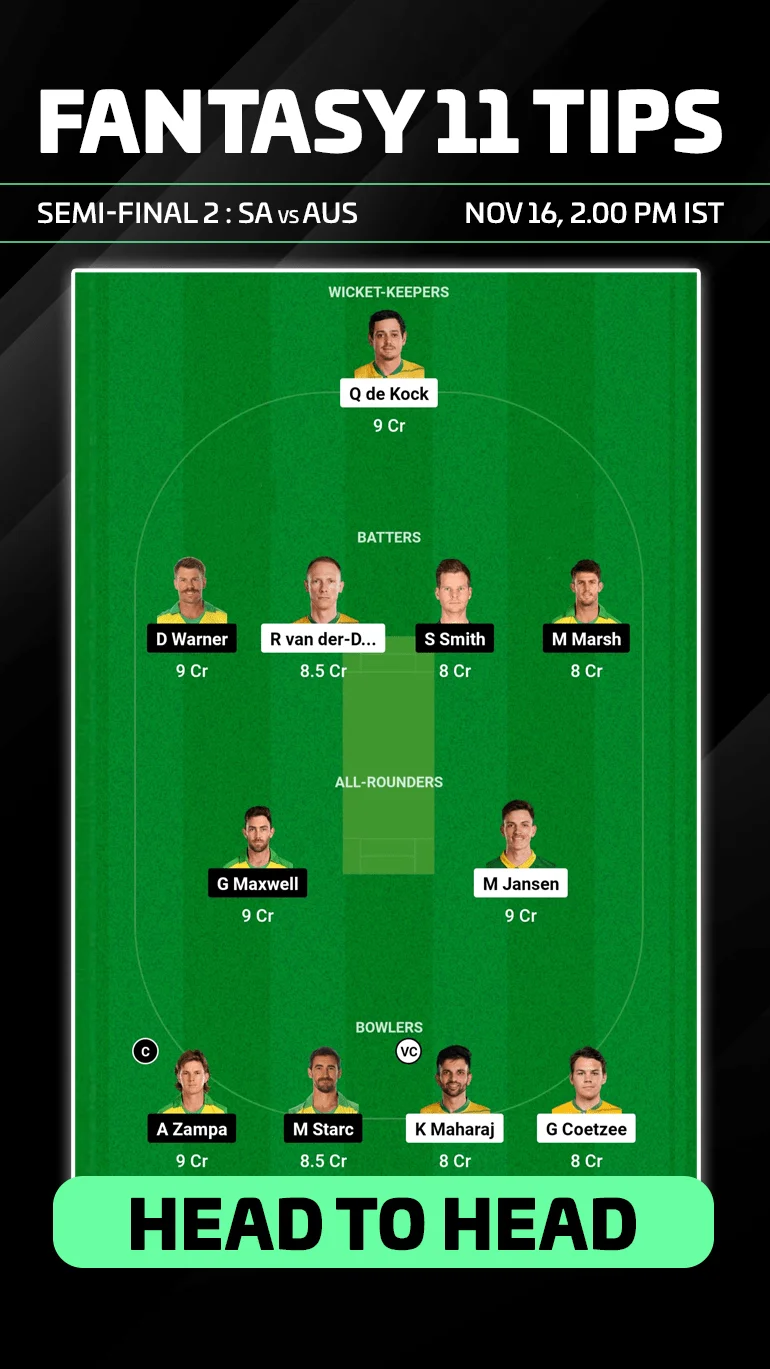 SA vs AUS Dream11 Prediction, Fantasy Team Today’s, Playing XI, Head to Head Stats, and Injury Updates for ODI World Cup 2023 Semifinal2 Match
