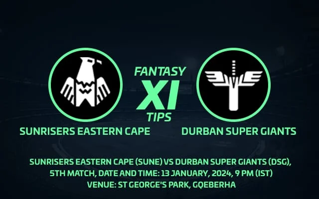 Match: Sunrisers Eastern Cape (SUNE) vs Durban Super Giants (DSG), 5th Match