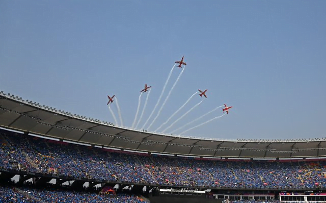 There was good coordination from the pilots, who gave a memorable moment to the people in the stadium. The show happened for about 20 minutes in between the toss and the start of the national anthems of the two teams. It set the match ablaze, as the players and fans seemed to be ready for the big match.