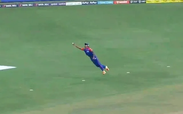 Aman Khan took an extraordinary catch in the Royal Challengers Bangalore (RCB) vs Delhi Capitals (DC) IPL game in Bengaluru. Faf attempted to pull Mitchell Marsh’s short ball and send it off for a boundary, but instead, the ball found Aman Khan waiting nearby. Khan led his one hand first and stuck it to the ball, and then successfully completed the catch on the second attempt to give the Delhi Capitals their first and most significant breakthrough.