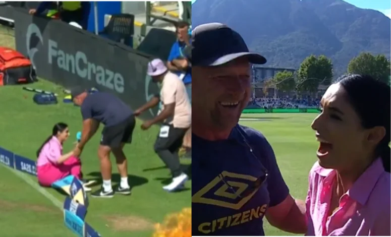 SA20 has enthralled the audience with some riveting cricketing action in the first week. The Match 12 between MI Cape Town and Sunrisers Eastern Cape was no different as fans got to see a thrilling chase. During the game, a hilarious moment was witnessed as anchor Zainab Abbas fell down while taking an interview on the boundary rope.